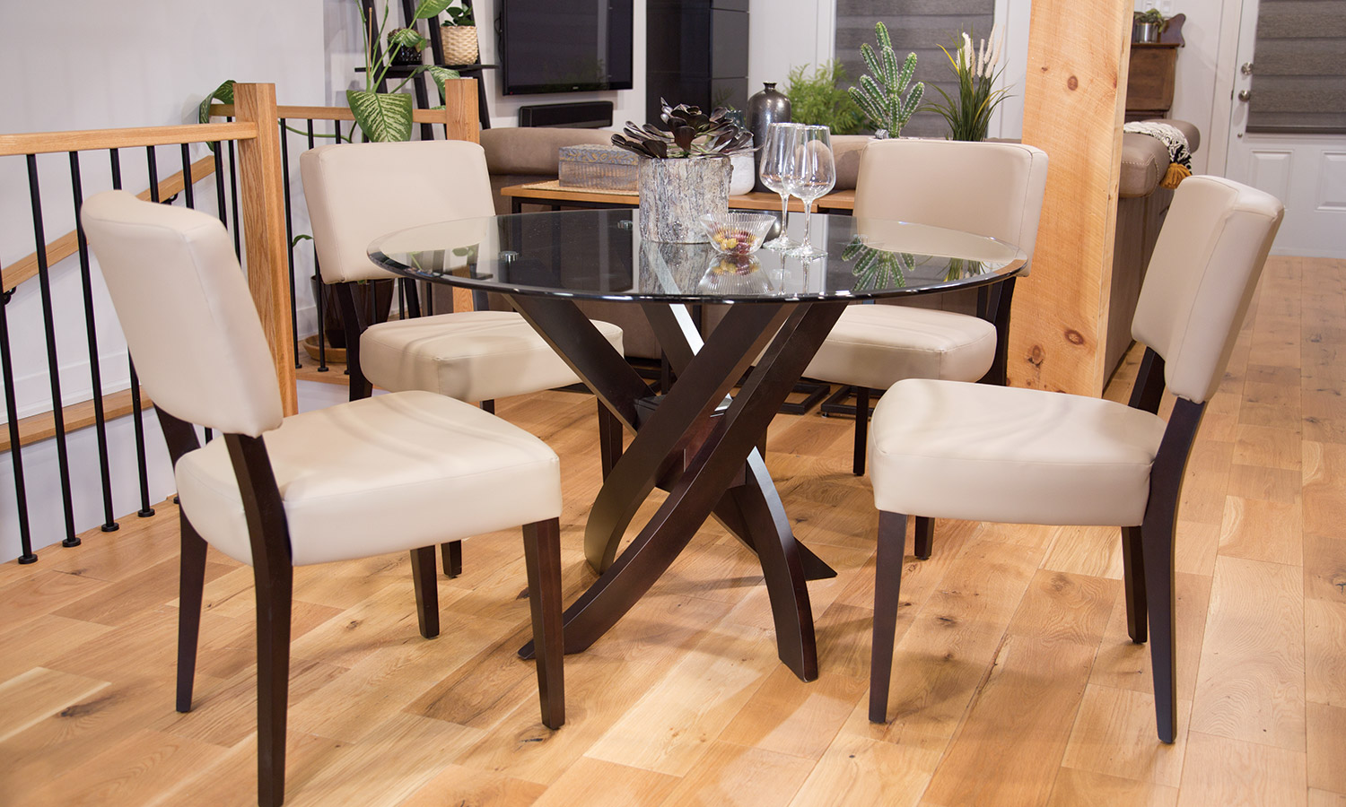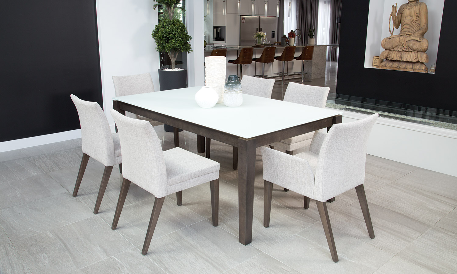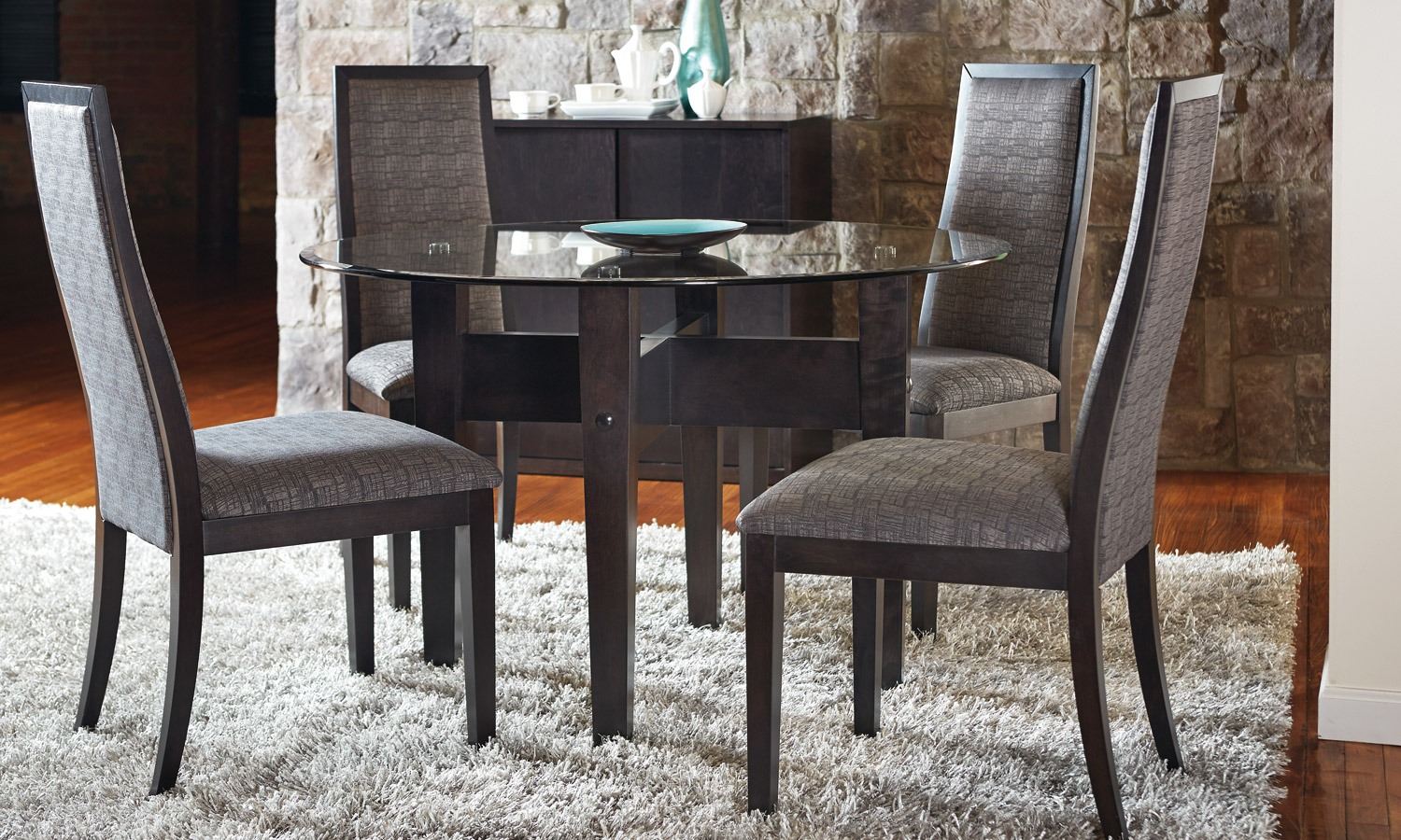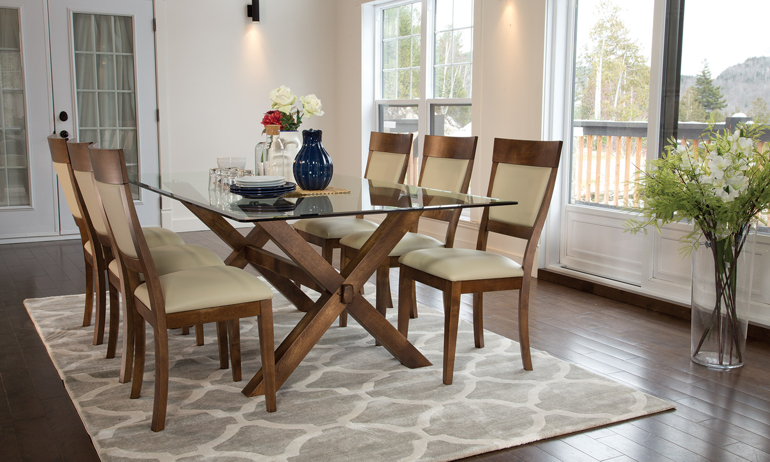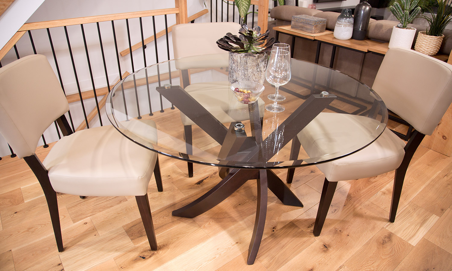Table avec dessus de verre teinté