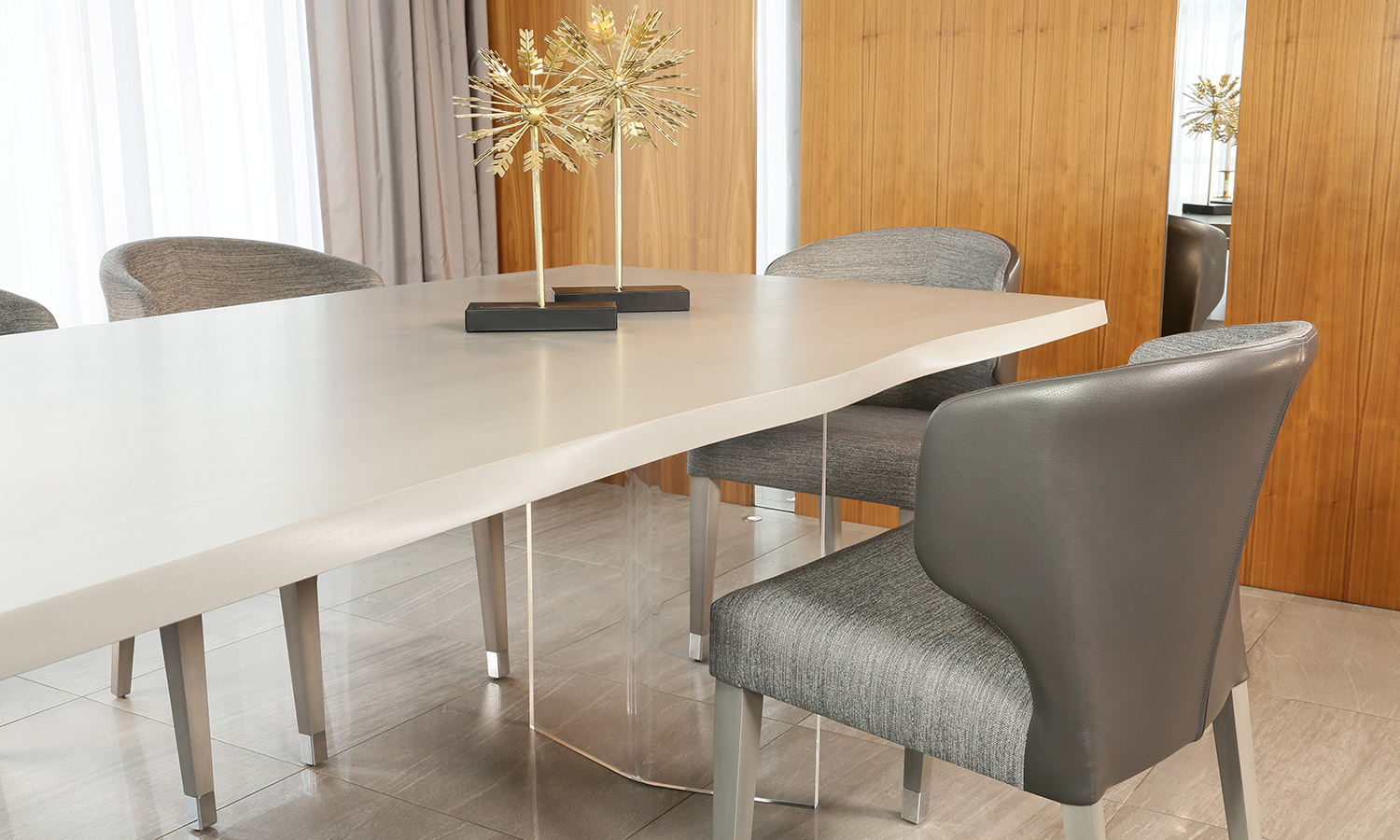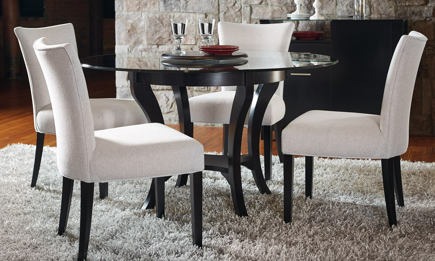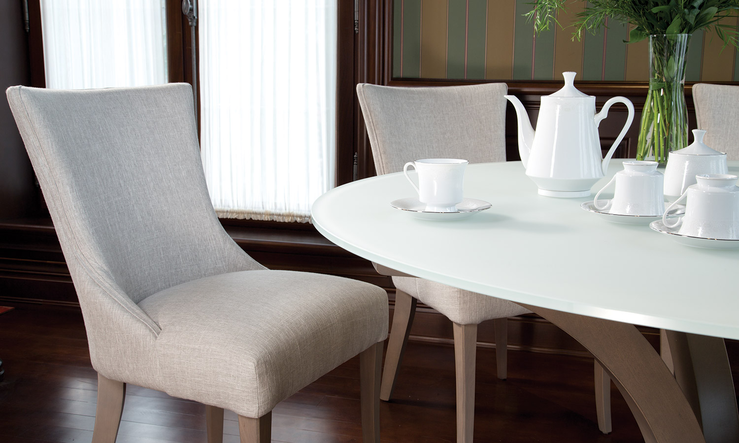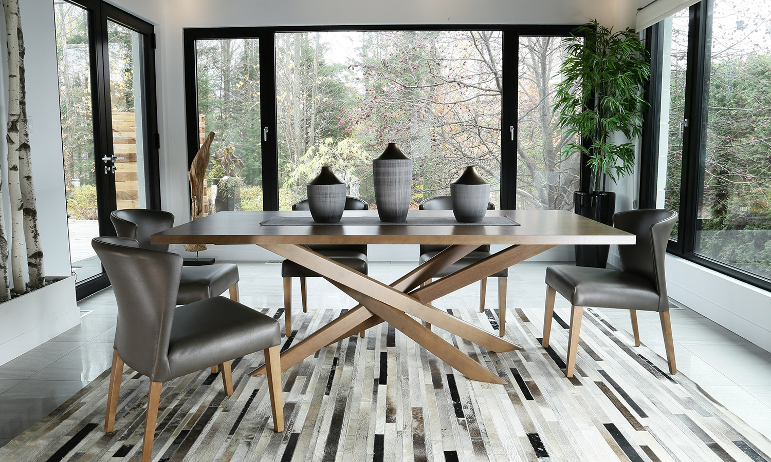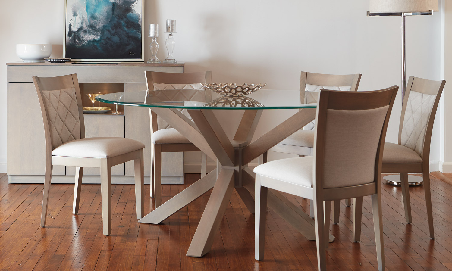 Table avec dessus de verre teinté