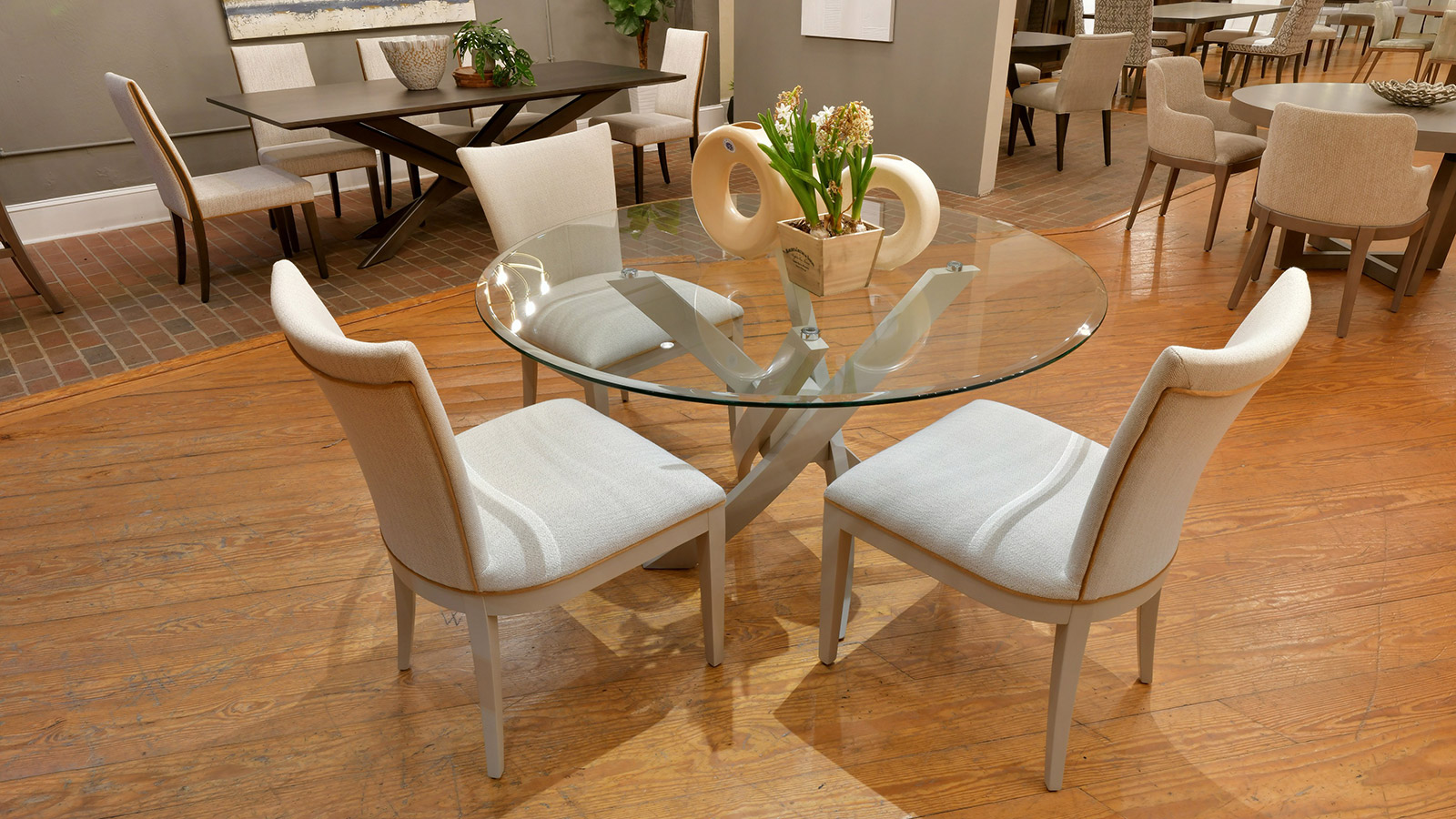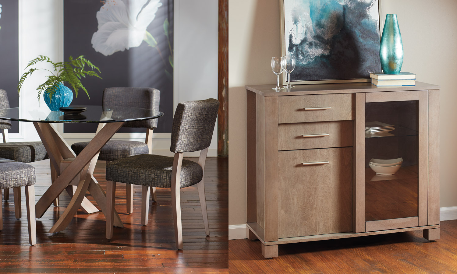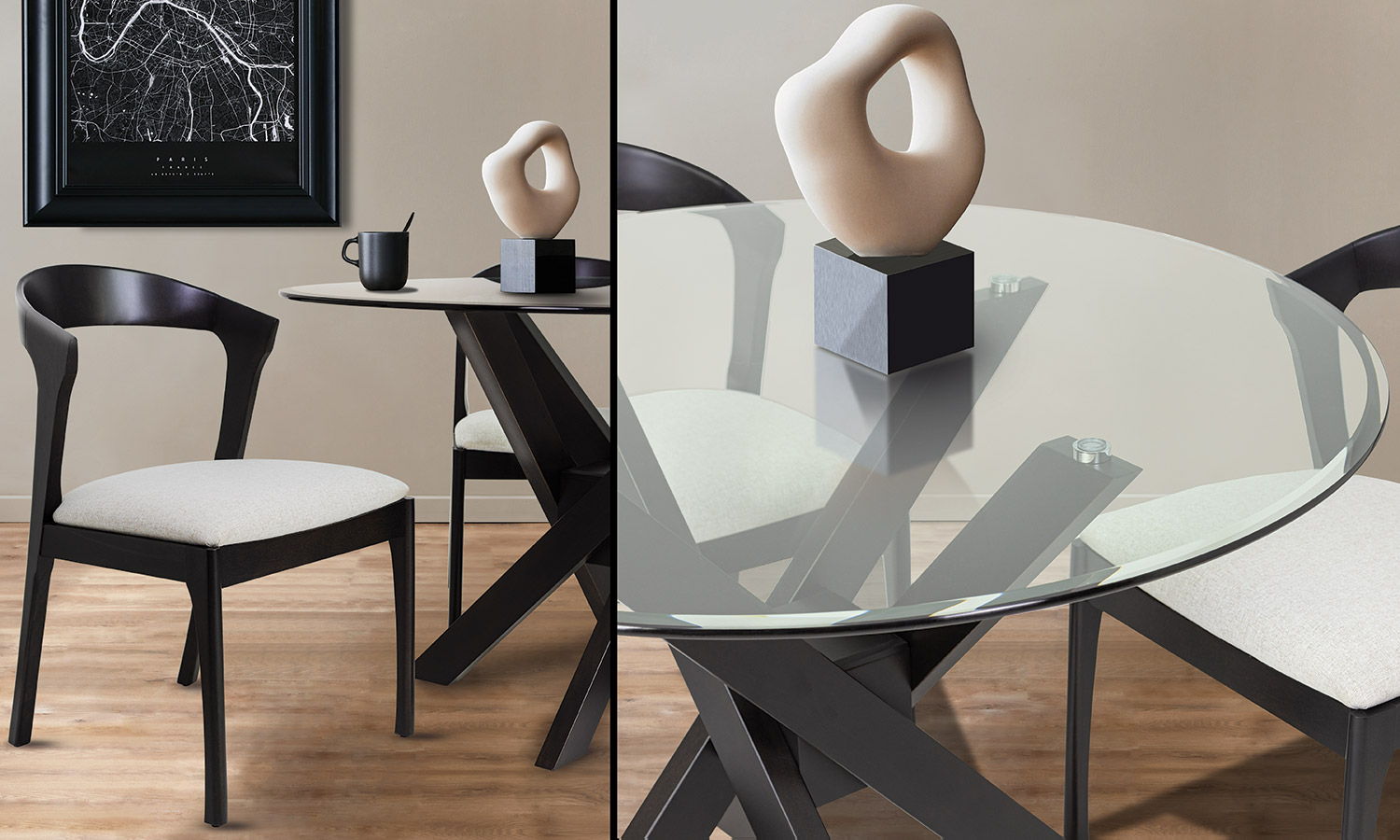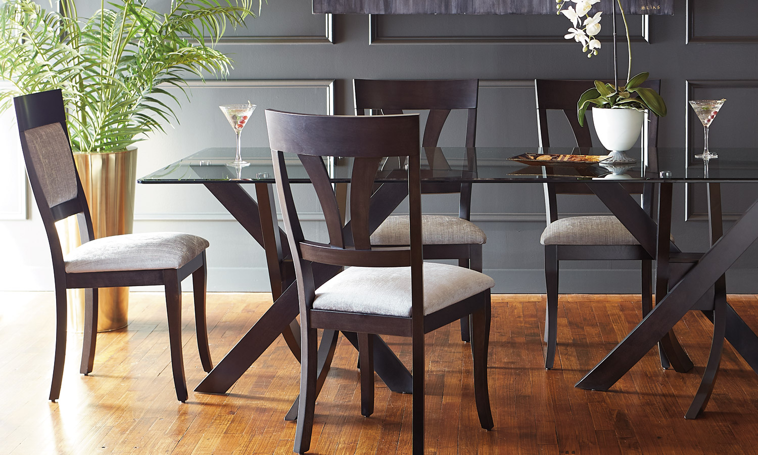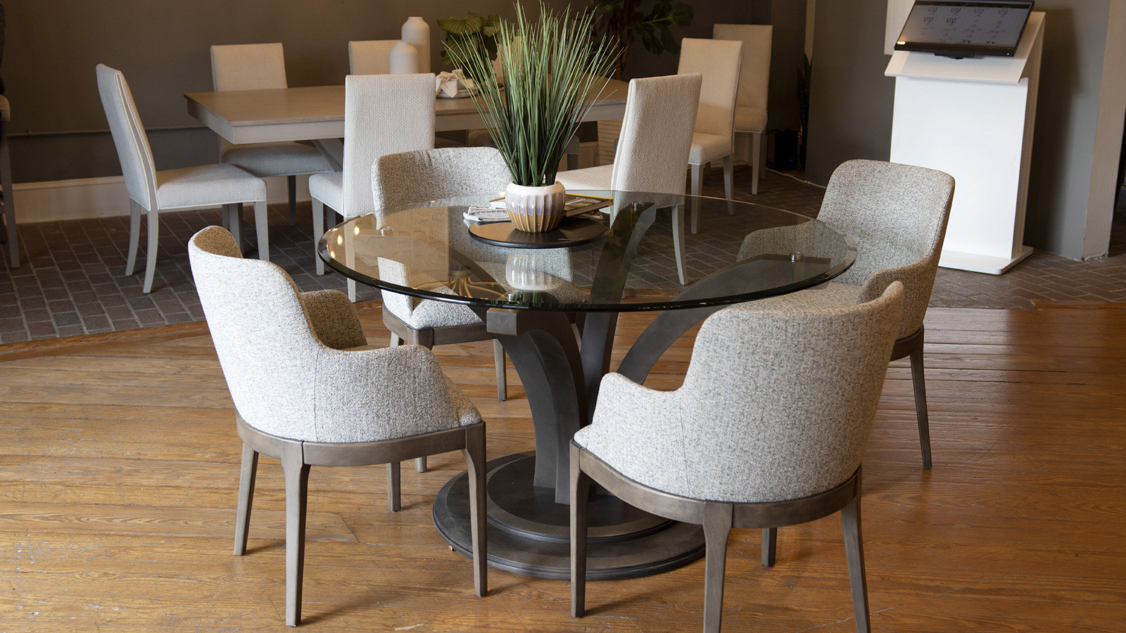 Table avec dessus de verre teinté