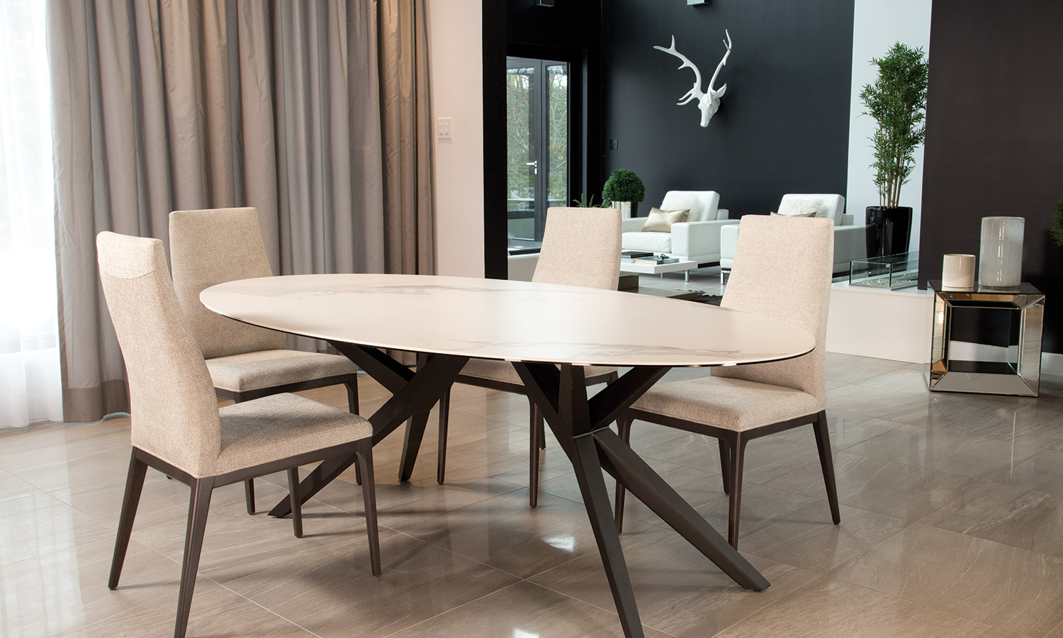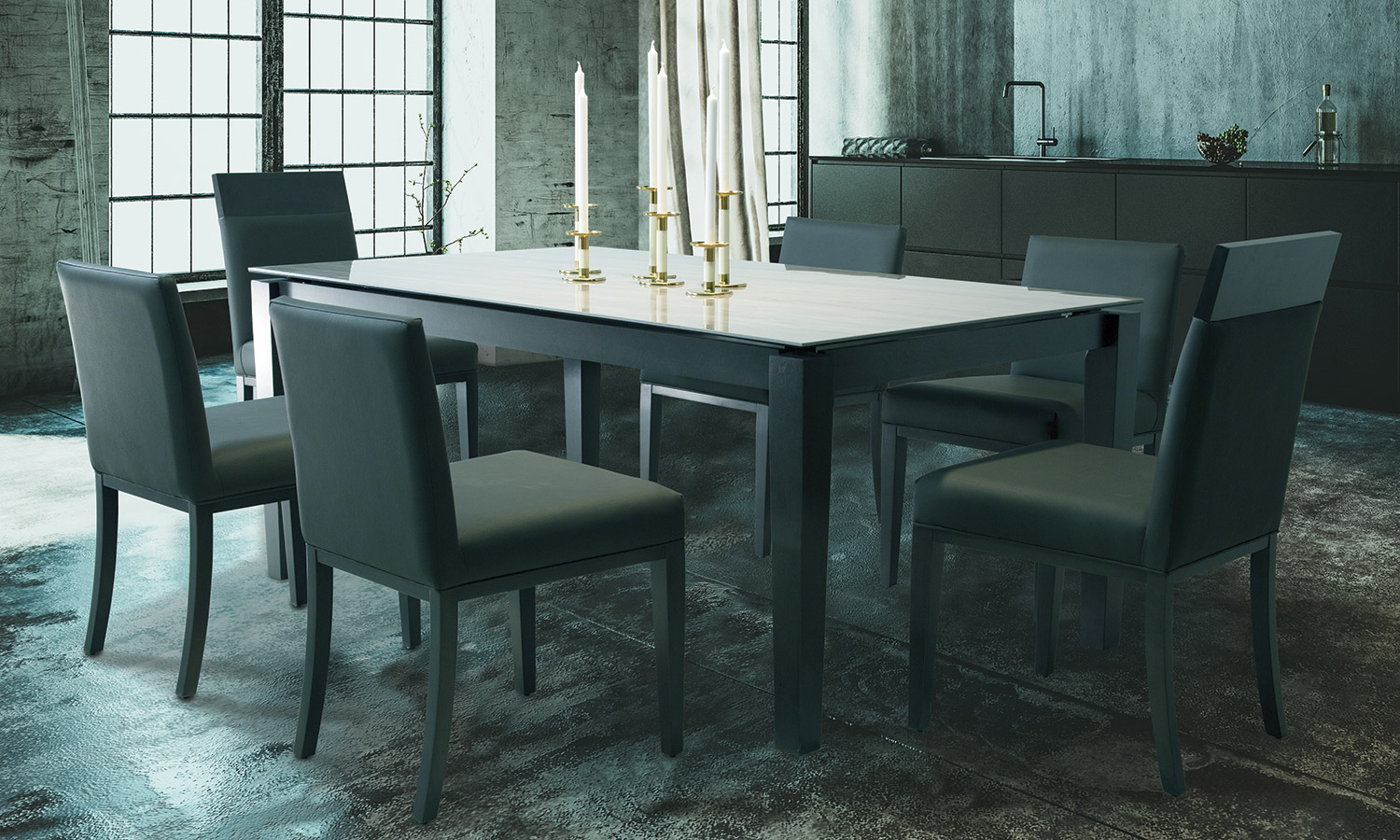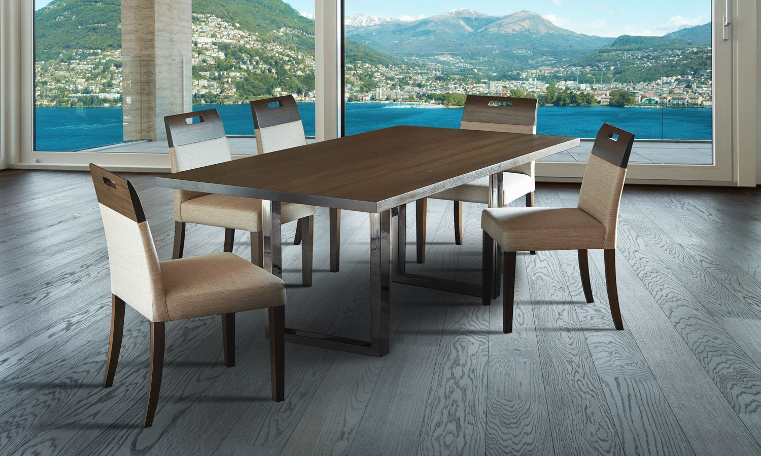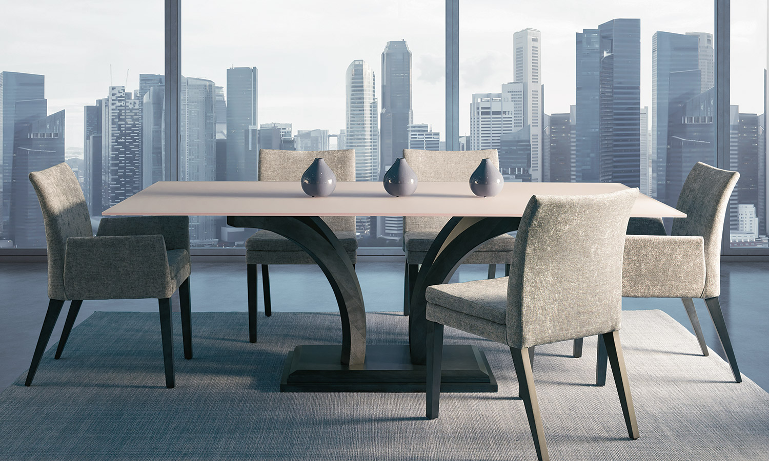 Table avec dessus de verre teinté