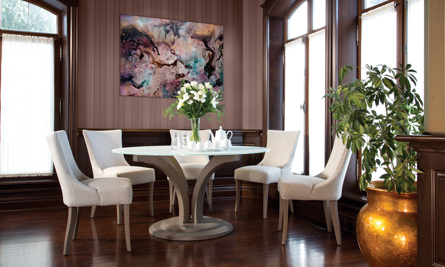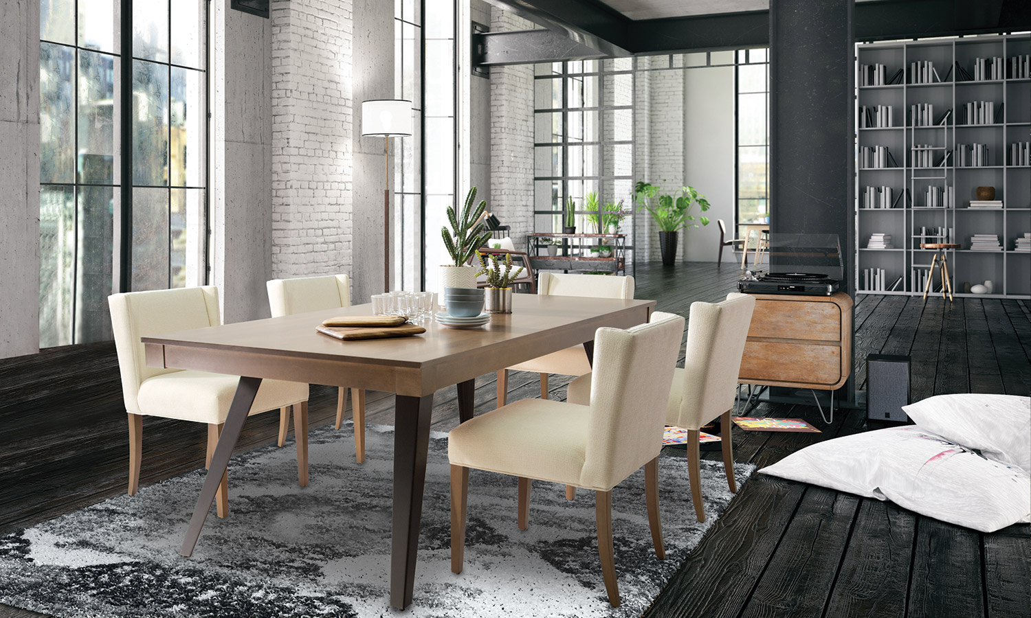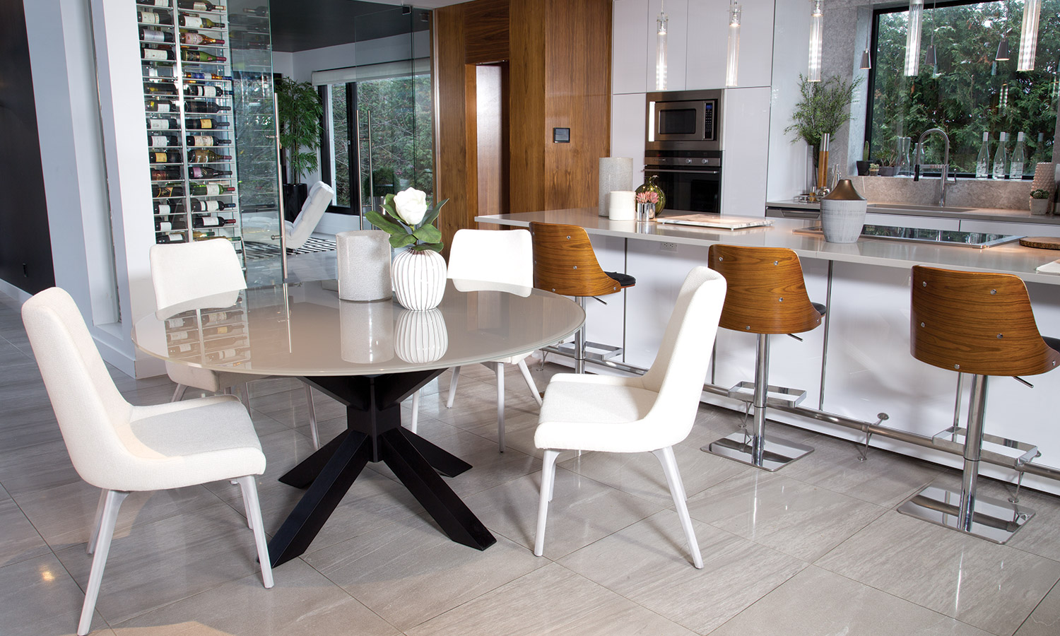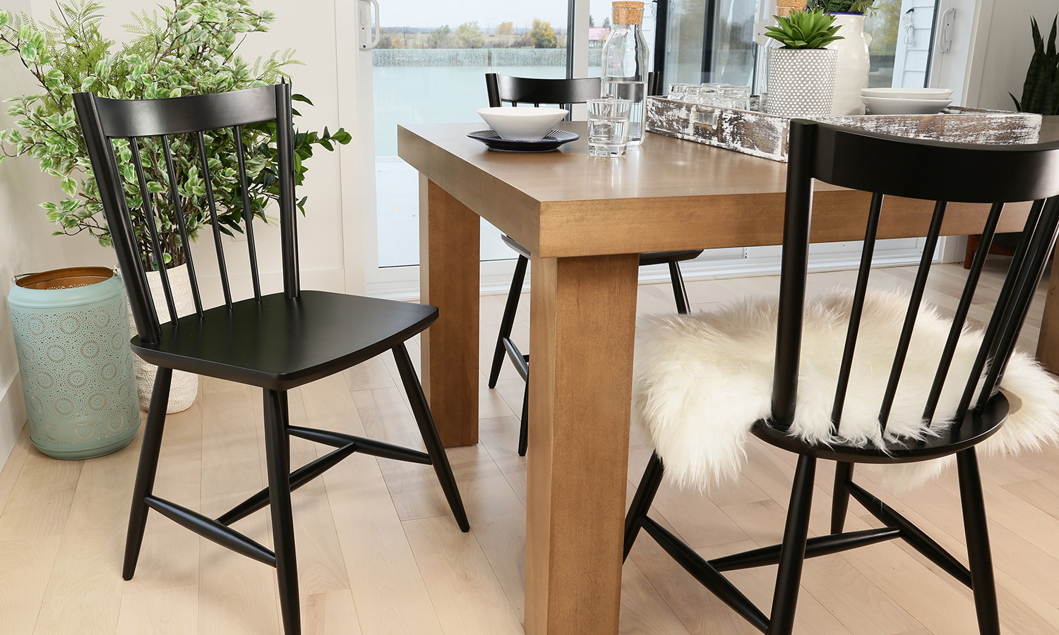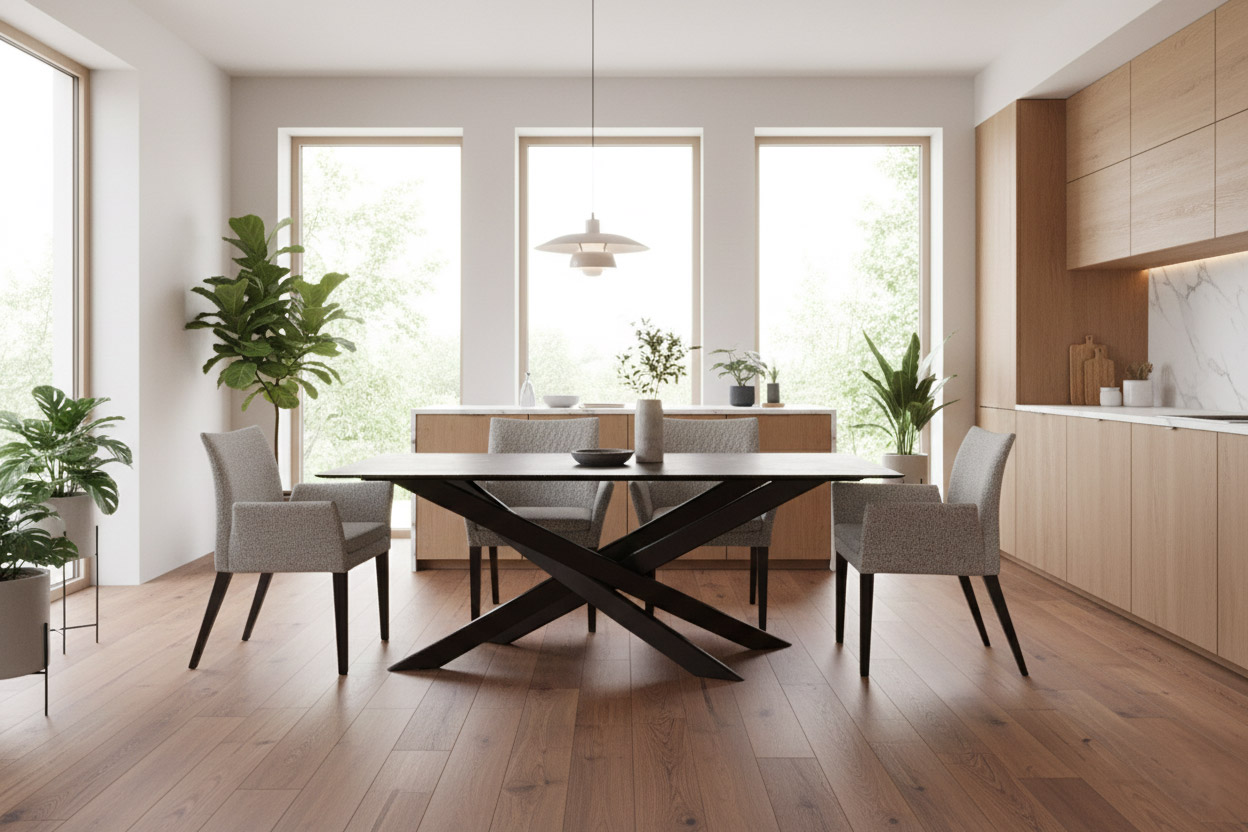 Table avec dessus de verre teinté