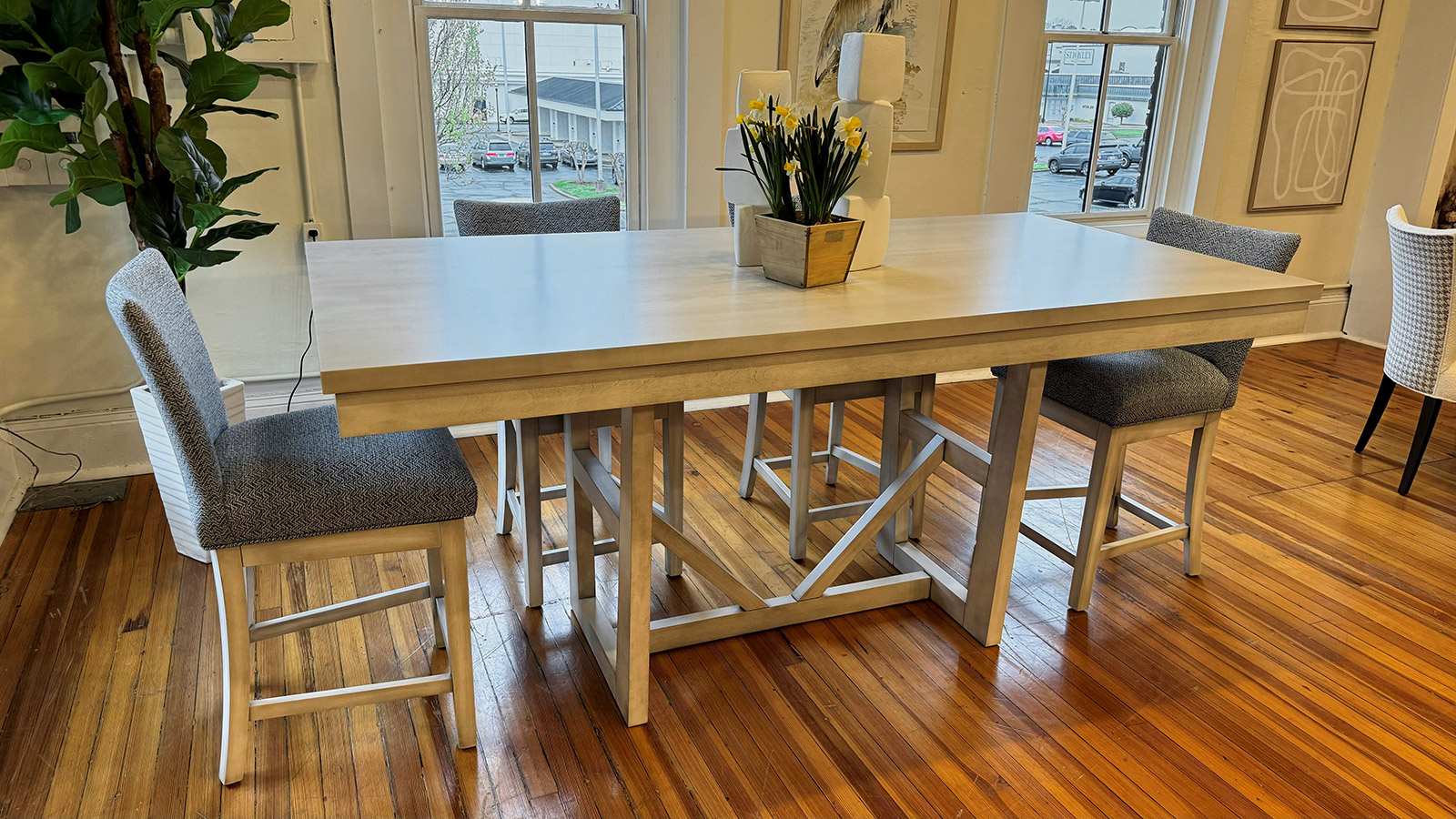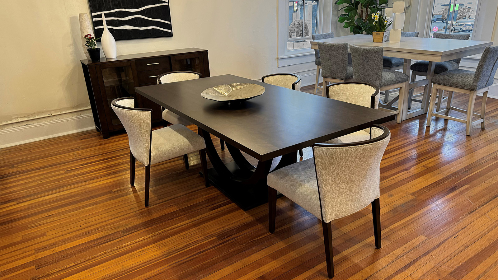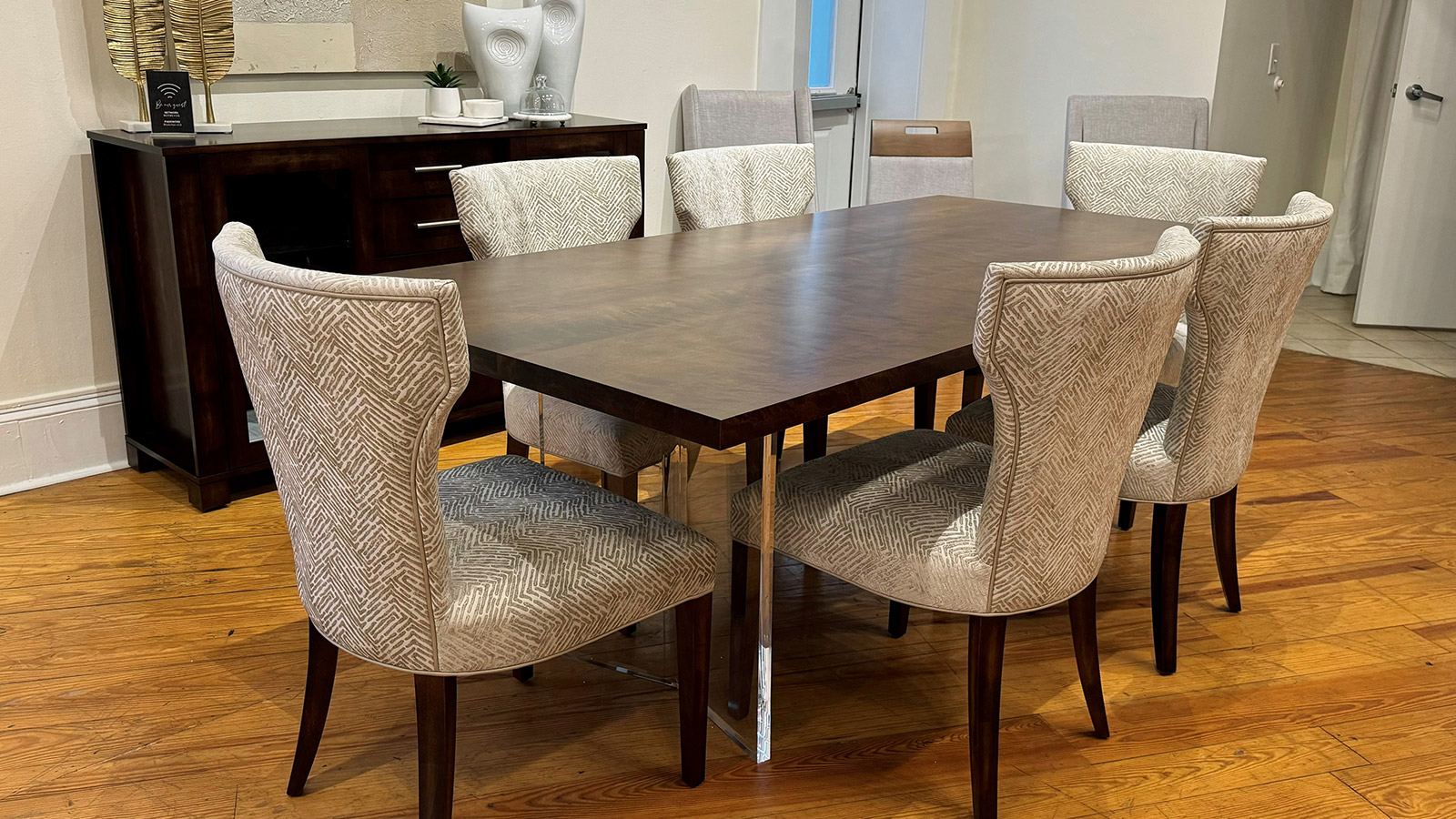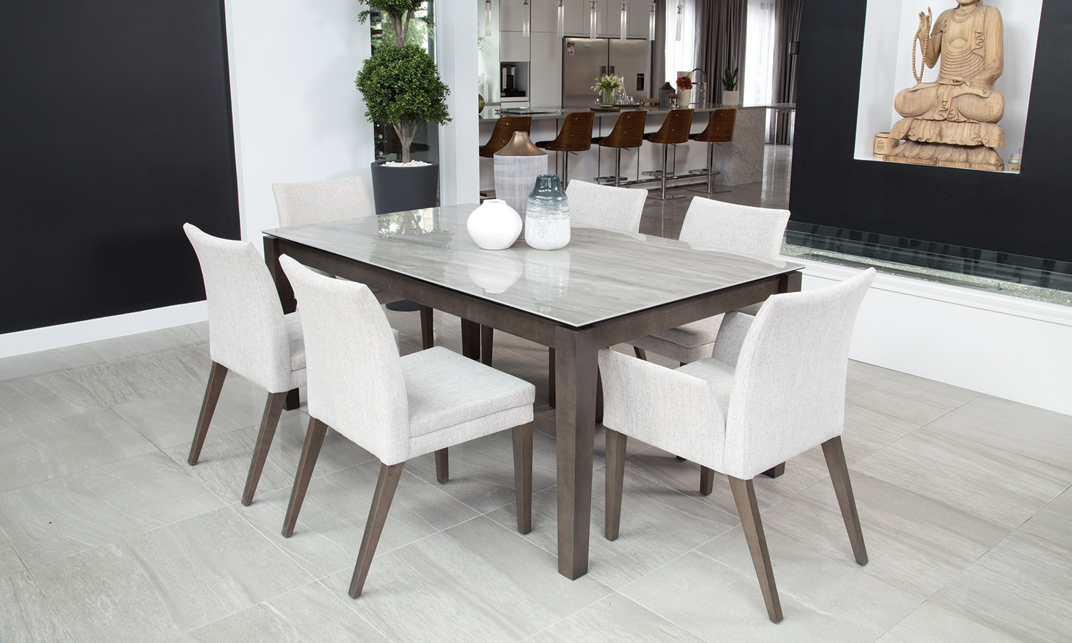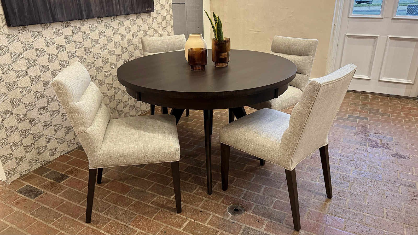 Table avec dessus de verre teinté