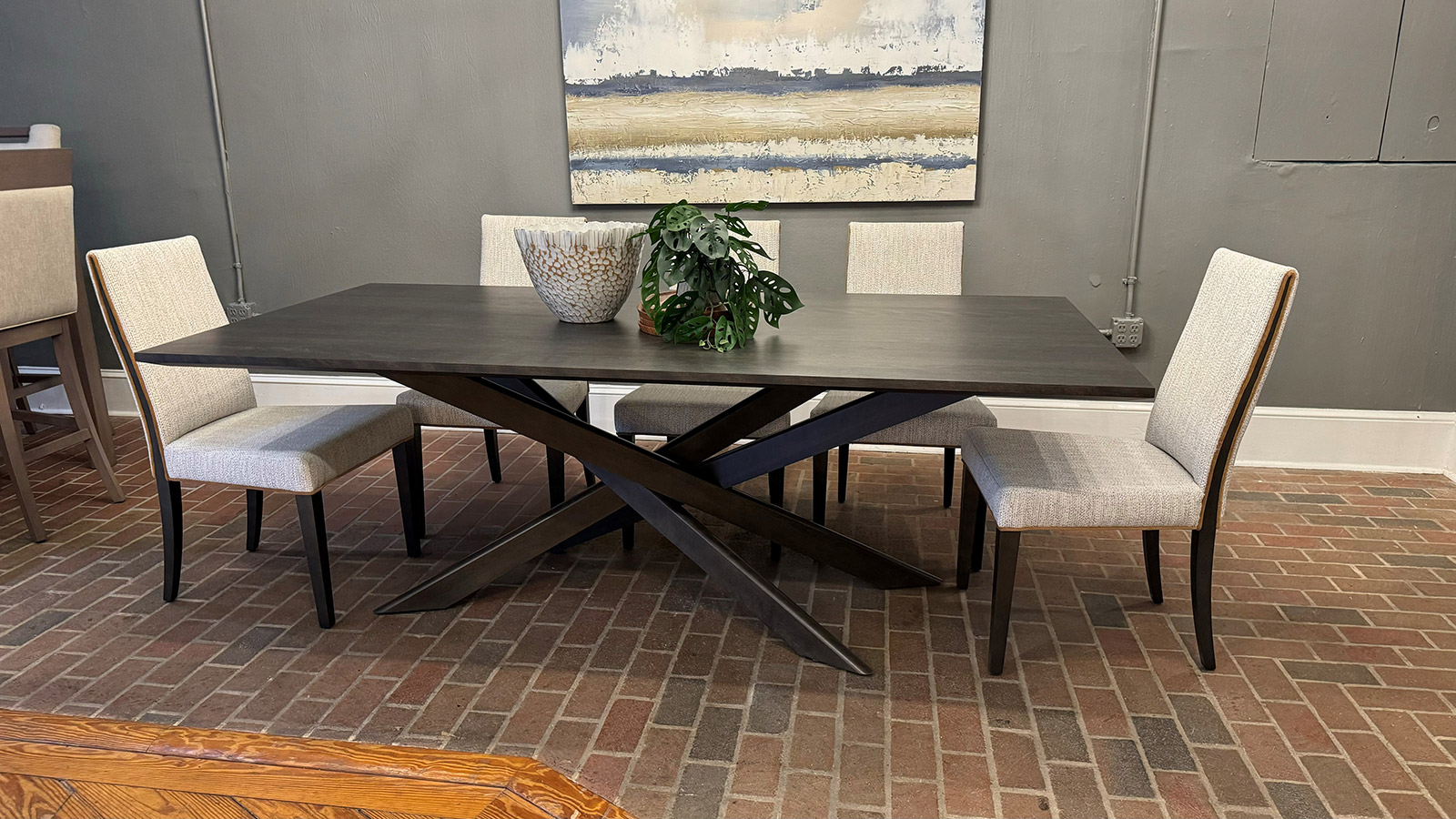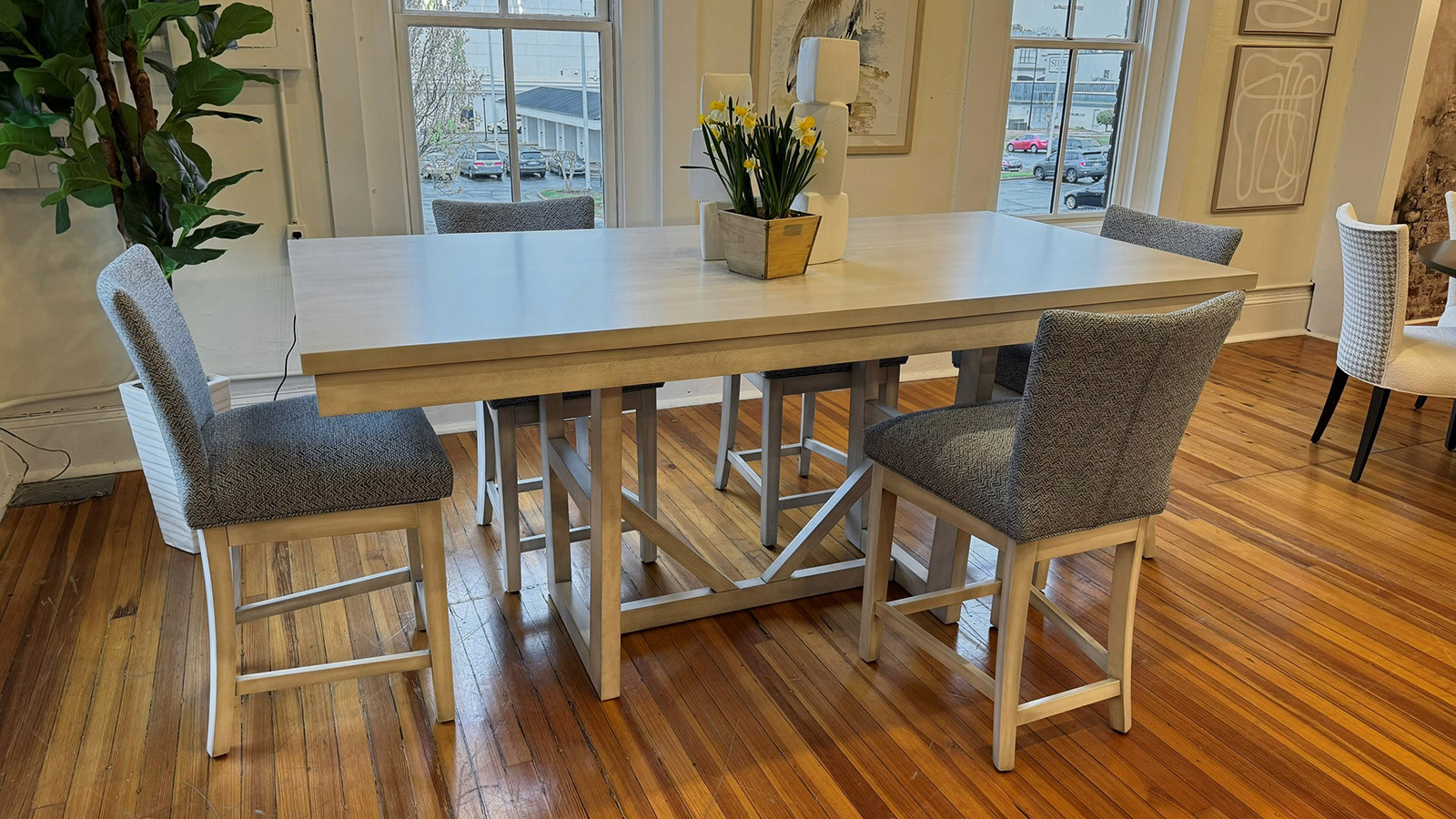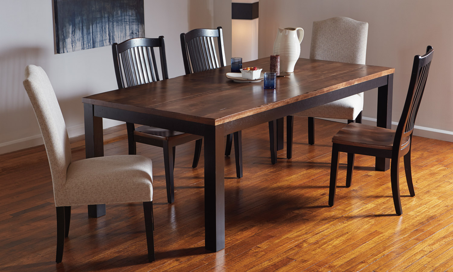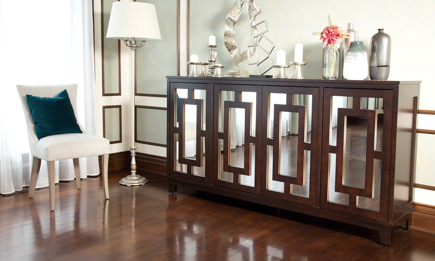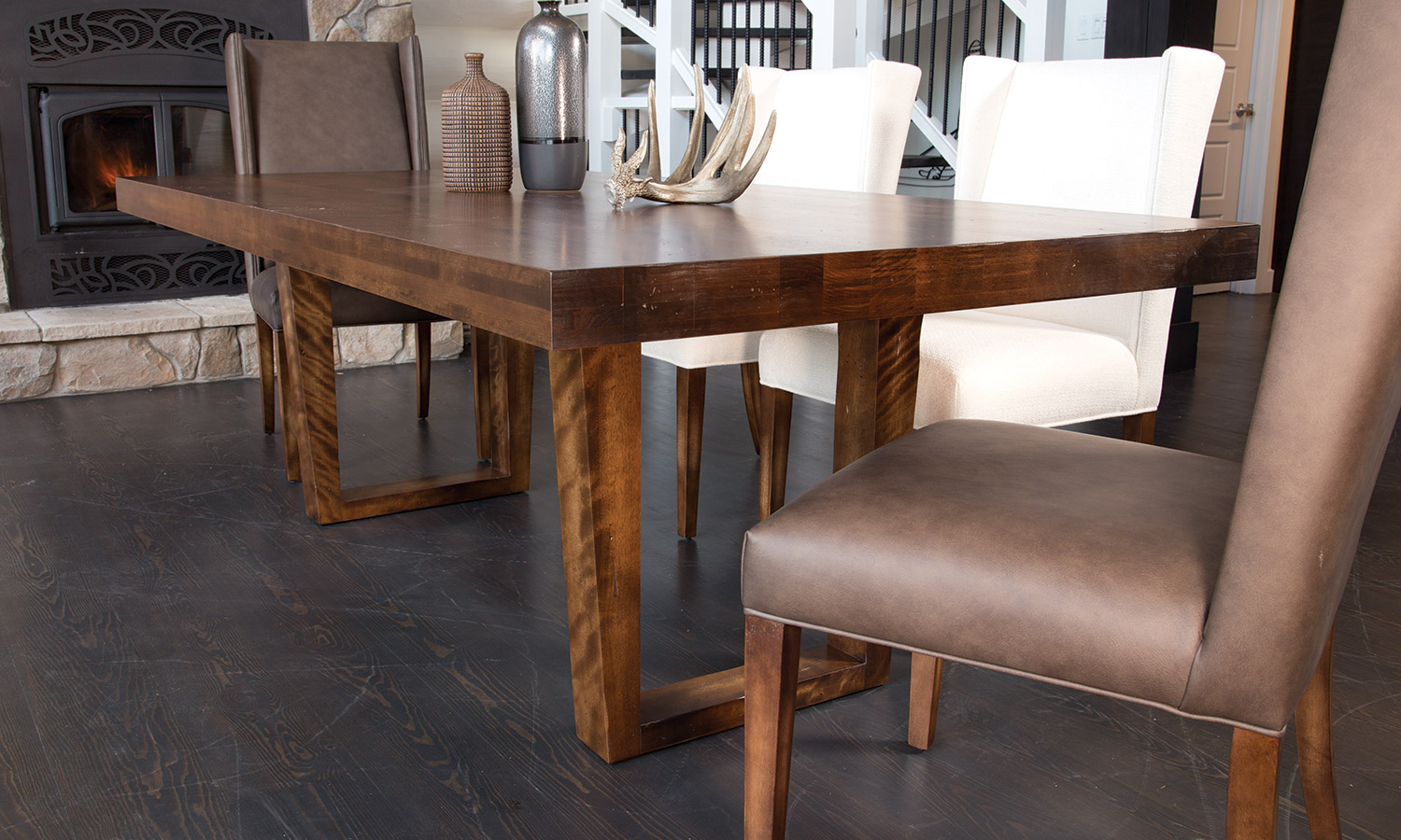 Table avec dessus de verre teinté