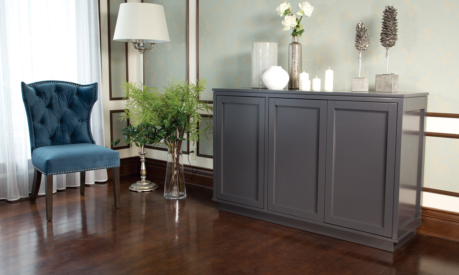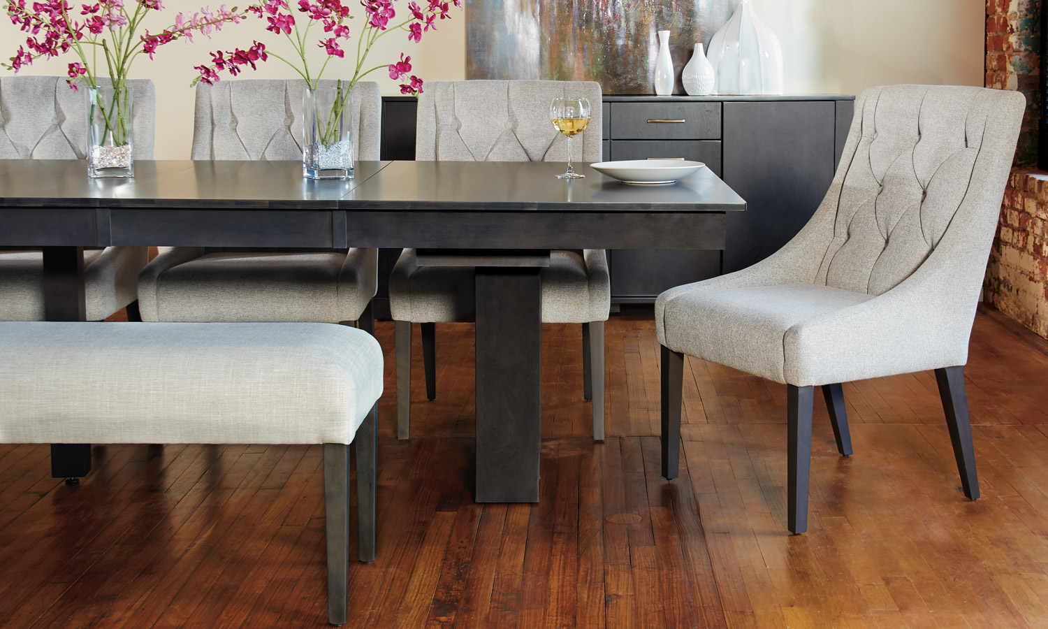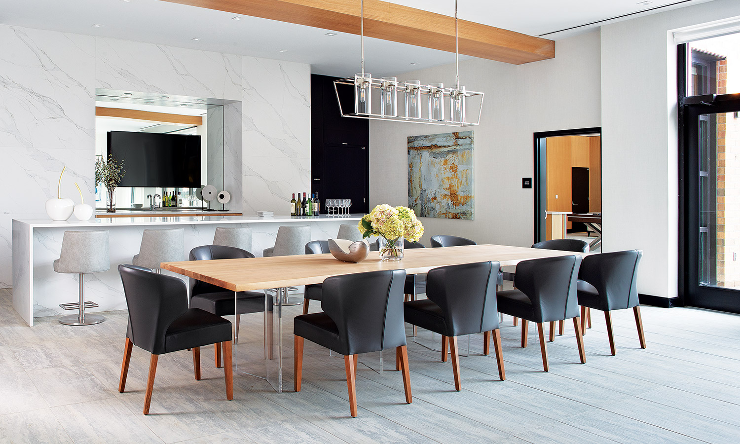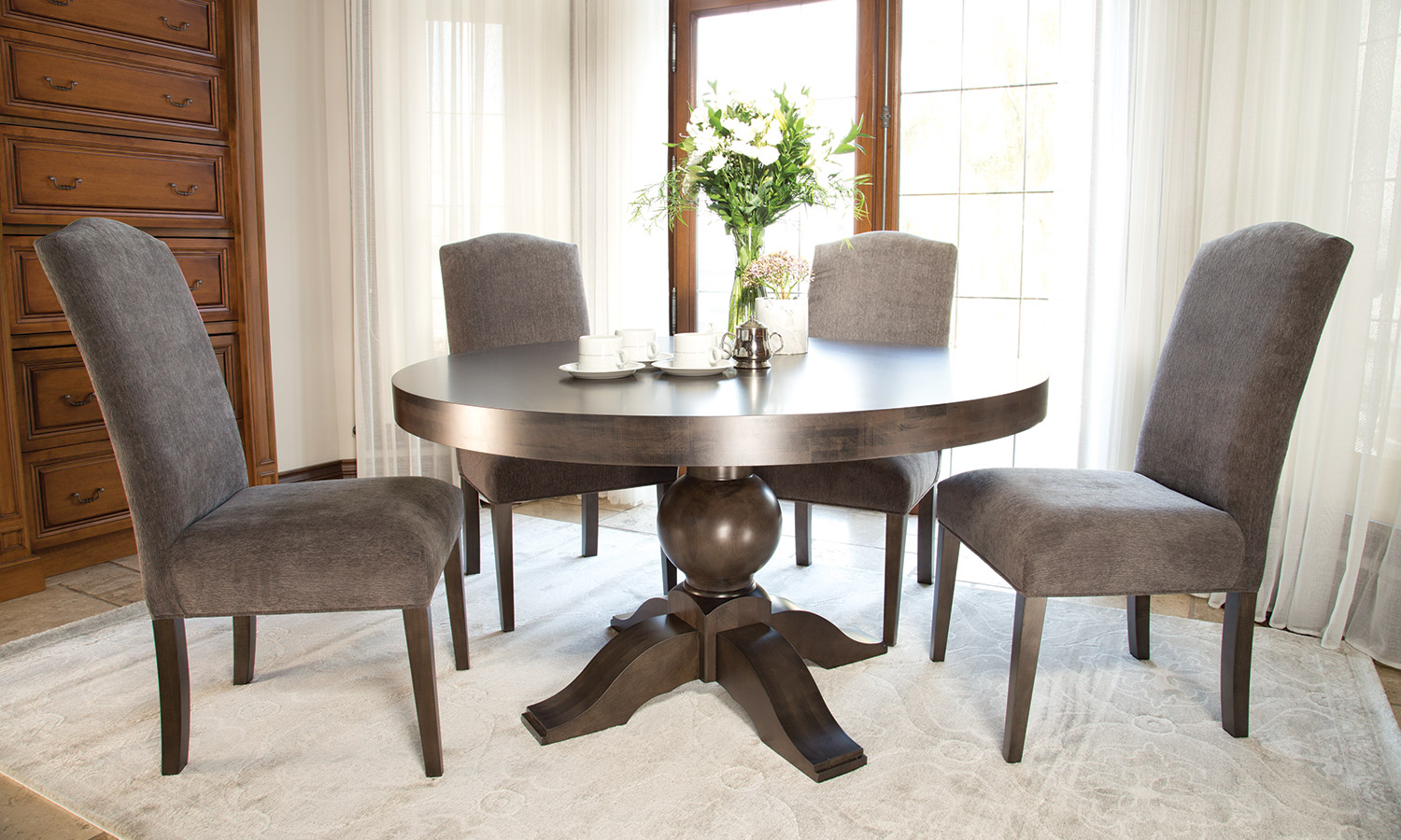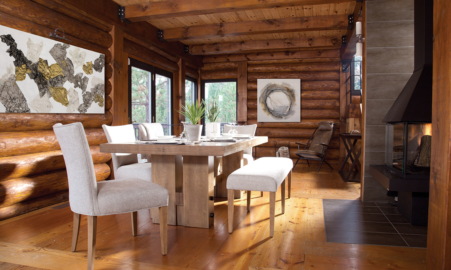 Table avec dessus de verre teinté