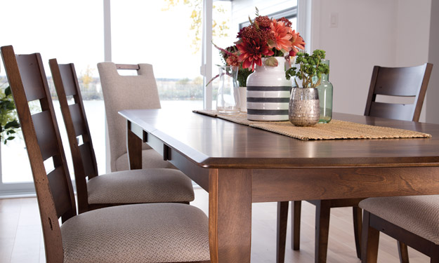 Ce fini brossé, à 10 % de lustre, rehausse la beauté intemporelle du bois massif tout en lui donnant un cachet à l'ancienne. Peu profondes, les fines rayures parallèles sont créées à l'aide de papier de verre granuleux. Offert seulement sur le dessus de certains buffets et le dessus de certaines tables.